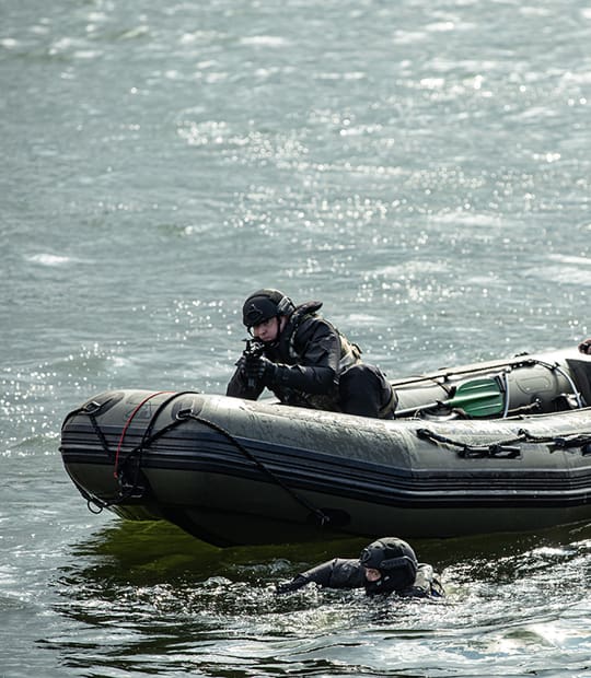 The DSB 530 GPM Military Inflatable Boat is designed for military forces requiring a robust and highly durable platform capable of handling a wide range of mission profiles. Constructed from UV and abrasion-resistant Hypalon, this boat ensures long-term durability and operational readiness in the harshest maritime environments.