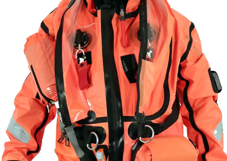 Specifically designed for rush escape, Kairos offers robust, double-layered protection with twin inflatable insulation chambers. Developed to meet the German Navy’s rigorous standards, it provides maximum protection during rapid, high-pressure evacuations.