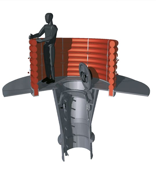 The Freeboard Extension System (IFE) is designed to substantially improve the safety of personnel during emergency surface abandonment from submarines. This innovative system increases the freeboard of a submarine by an additional metre, creating a crucial haven for crew members evacuating the vessel in challenging sea conditions.